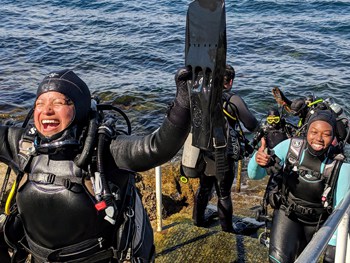 This new program combines Reef Check California’s citizen science training with our EMBARC youth program, to provide more people from traditionally underrepresented communities our citizen scientist diver training and to teach them how to provide marine science education to urban youth. Every year, OBA trains 30 young adults as wilderness leaders/instructors through its Diverse Outdoor Leaders Institute (DOLI) with a goal of exposing urban youth to national parks, forests and other wilderness areas. In February, we recruited 12 participants from the 2019 DOLI class to participate in our SCUBA and citizen science training program.