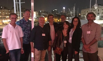 | Dania Trespalacios and Julian Hyde share management and conservation success stories from the field | From left to right, Dania Trespalacios, Julian Hyde, Sander den Haring, Moshira Hassan, and Georg Heiss discussing RC training methods and standards | From left to right, Dr. Georg Heiss (RC Germany), Julian Hyde (RC Malaysia), Dr. Massimo Ponti, Dr Carlo Cerrano, Dr. Gianfranco Rossi (RC Italy), Amalia Cuadros (University of Murcia), Dania Trespalacios (RC Worldwide), and Dr. Lorenzo Bramanti (Laboratoire d'Ecogeochimie des Environnements Benthiques) |