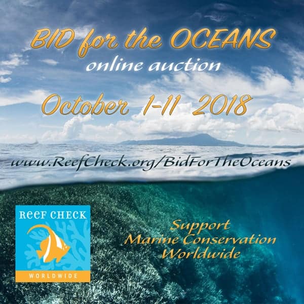 This year we’re taking Reef Check’s annual auction online! Join us for “Bid for the Oceans”, taking place October 1-11, 2018. We’ll be showcasing items that run the gamut from diving trips and beach resort stays, to tickets for cultural experiences and even a ride on the Goodyear Blimp!