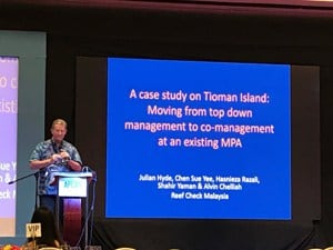 Reef Check (RC) in the Asia region was well represented at the event. Two of the Philippines’ most distinguished marine scientists, Dr. Al Licuanan and Dr. Perry Alino, are part of the RC Philippines network; some consider them to be the founding fathers of marine conservation in the Philippines. We also were introduced to the new coordinator in the Philippines, Vanessa Vergara, who is already making significant strides in fundraising for training and survey programs. Also represented were Taiwan, Japan, China, Hong Kong, Vietnam, Thailand, Malaysia, Singapore and Indonesia.