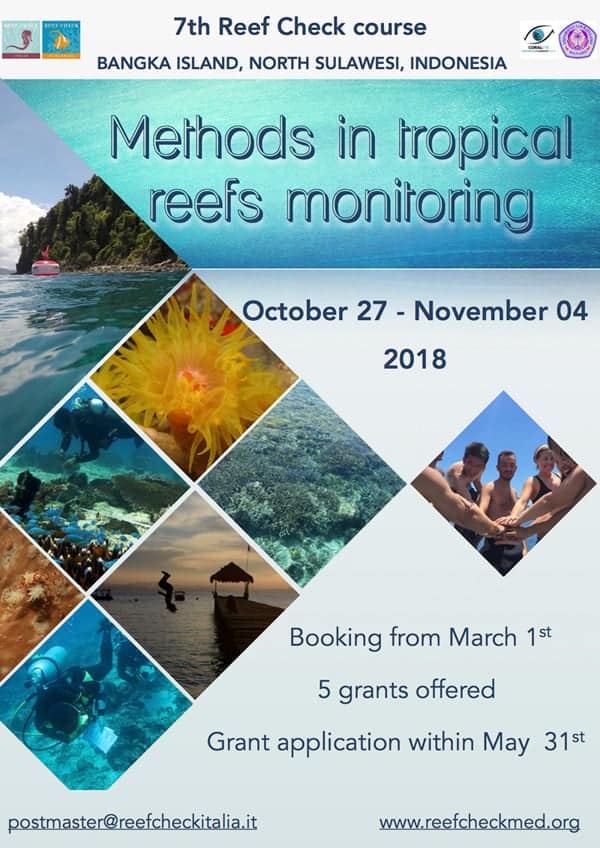 Grant applications must be submitted by May 31, 2018. Grant selection results will be communicated by email and published on the website by June 18. Application forms are available at https://reefcheckmed.org/italiano/reef-check-tropical/bangka-2018-bando/.