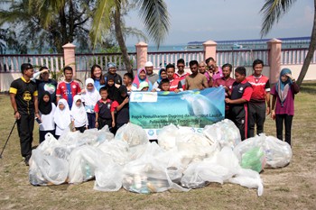 The clean-up was conducted at 16 locations around Malaysia and involved over 500 people from 20 organizations. Together they cleaned trash from 15km of coastline, filling nearly 400 trash bags. The trash collected included 15,874 plastic beverage bottles, 6,884 plastic bags, 2,368 cigarette butts…and 203 diapers.