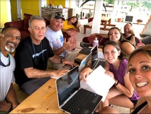 In the face of some difficult and dangerous situations, the team proved they were up to the task. One day Marissa was stalked by a barracuda and had to “walk on water” to get back to the boat, and on another day, the boat engine broke, producing spectacular black clouds of diesel smoke. In exposed coastal areas waves were often 10 feet high making it difficult to tow a diver. During lunch breaks the boat crew taught the students how to fillet the invasive lionfish to make ceviche.