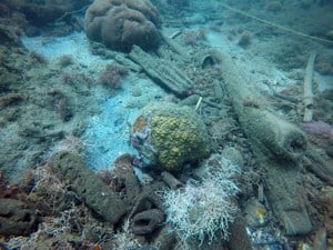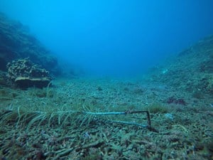 Many sea whips were broken off by storm waves and added to the broken hard coral branches on the seabed. |