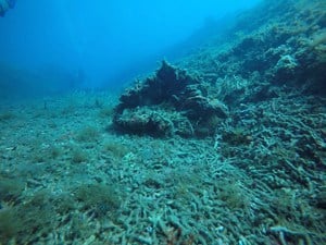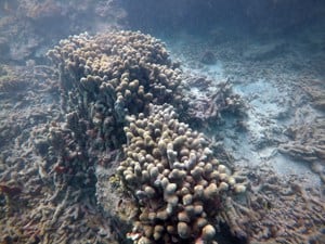 Some branching corals on this reef were damaged and others survived. |